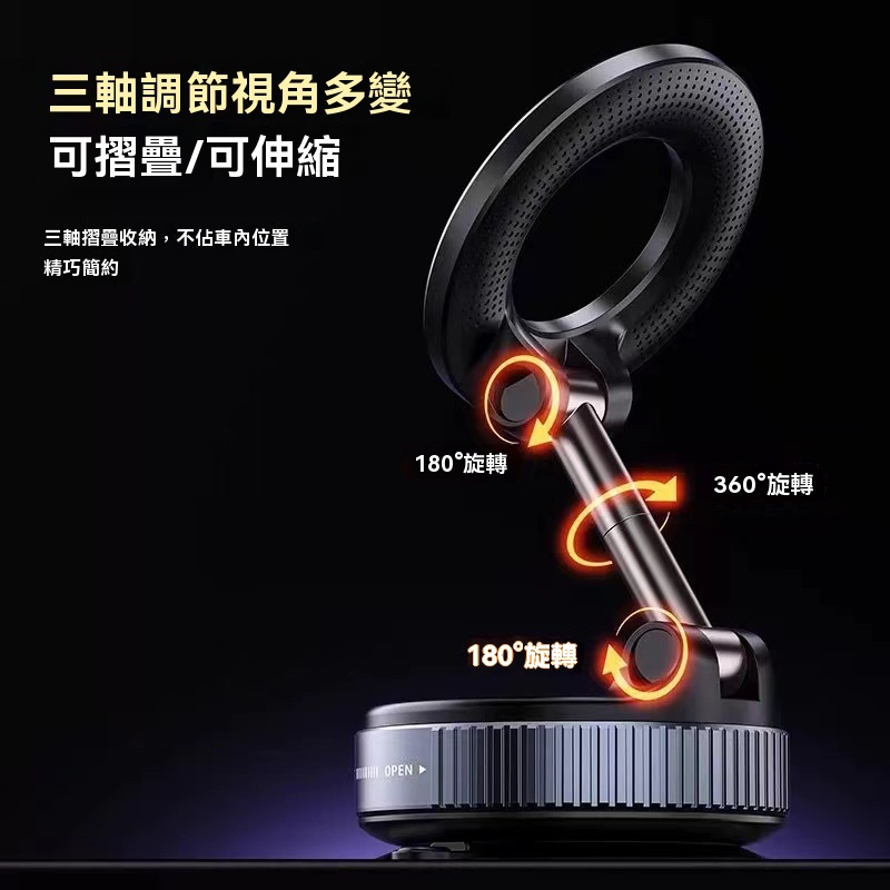 車載真空吸盤,磁吸導航手機支架,免粘膠伸縮摺疊便攜,汽車室內手機架